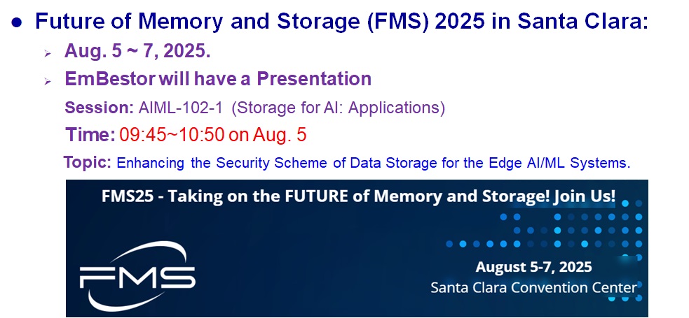 EmBestor、FMS 2025にてエッジAI/MLシステム向けの強化データストレージセキュリティスキームを発表予定